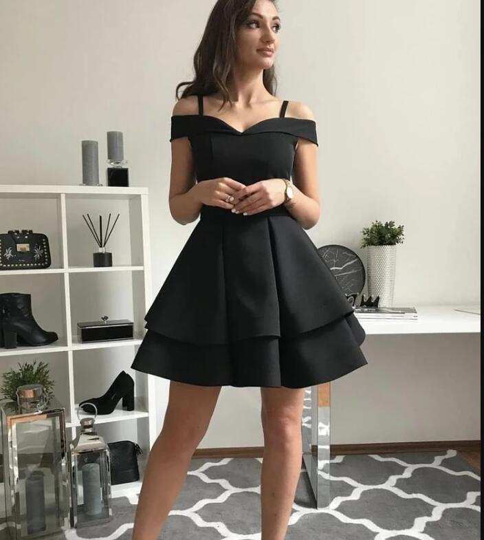 Robe de soirée courte bleu marine/noir à épaules dénudées pour remise de diplôme/retour à la maison, robe de cocktail courte pour jeunes filles SP0610