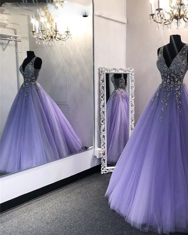 Robe de bal lavande à col en V et perles pour filles, robe de bal bouffante et douce, robe de bal PL102191