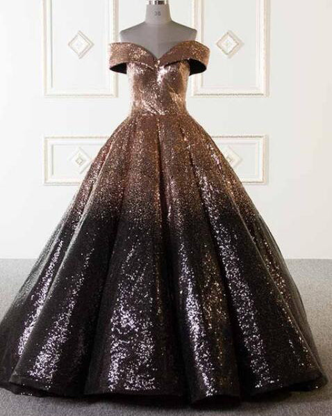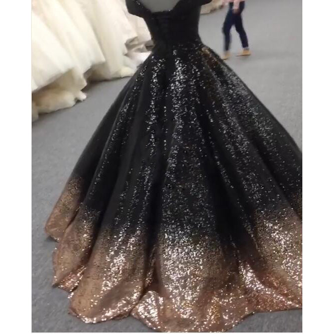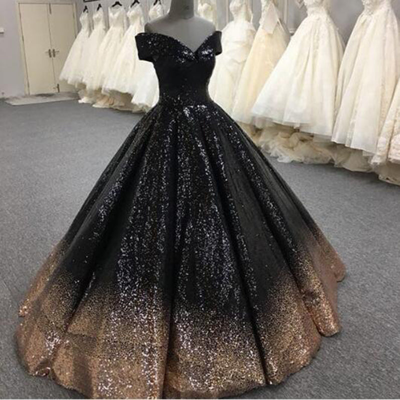 Robe de bal à paillettes dorées et noires, robe de soirée formelle à épaules dénudées, mascarade LP7752