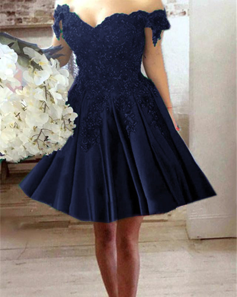 Robe de bal courte en dentelle bleue/rouge/verte à épaules dénudées pour filles, robe de cocktail de retour à la maison de 8e année SP632