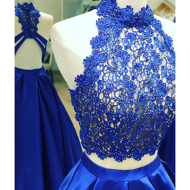 Robe de bal courte LP877, longue robe de soirée en satin, deux pièces, tenue de cérémonie de remise de diplôme pour filles bleues 2018