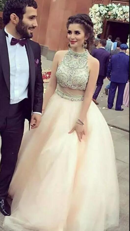 Robe de soirée deux pièces à col licou et perles Siaoryne