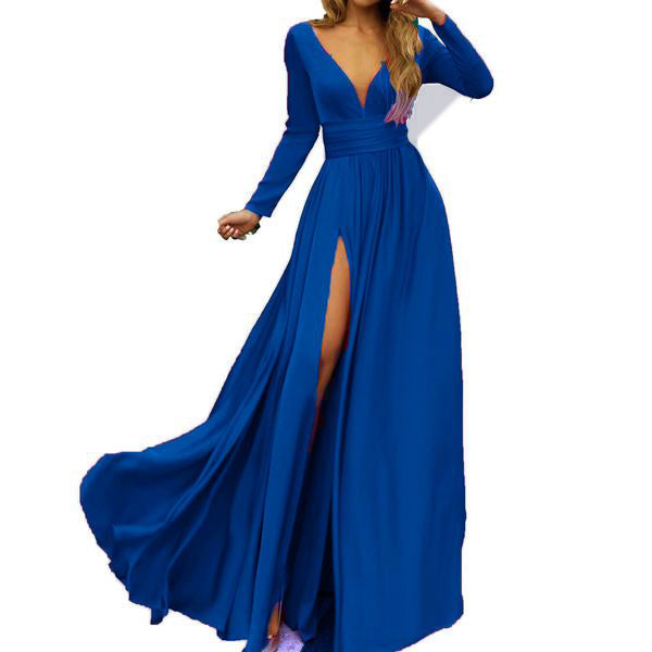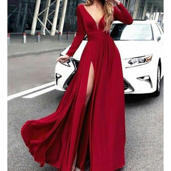 LP887 Emerald Sexy Deep V Neck Manches longues Robes de soirée Longues Robes de soirée formelles, longueur au sol Robes de bal femmes Robe de bal