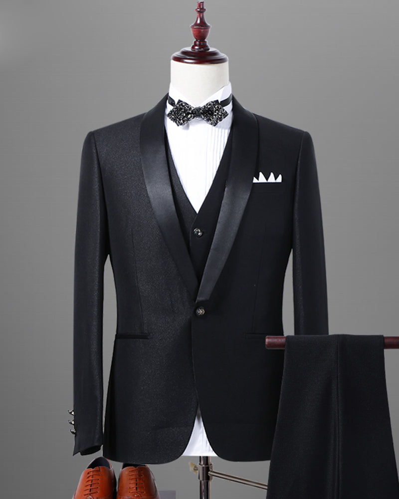 Smokings à revers châle noir/bleu marine pour hommes, costumes de marié formels pour hommes 3 pièces (veste + gilet + pantalon) LP332