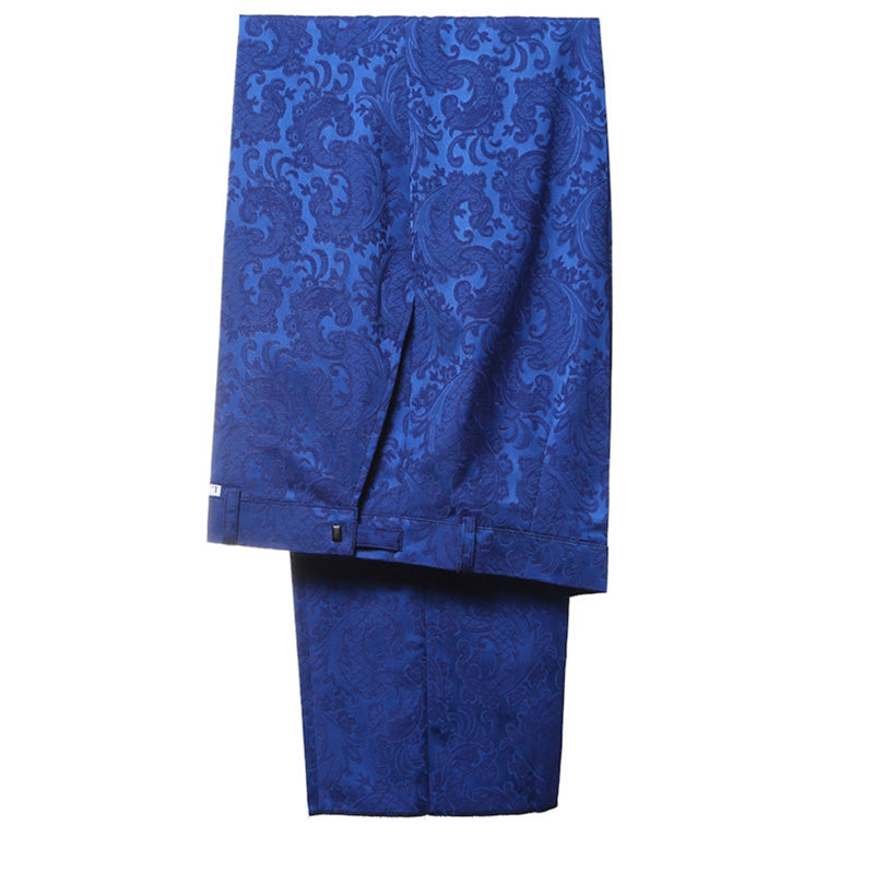 Costume de mariage à fleurs en jacquard bleu royal pour hommes Smoking de marié 2 pièces (blazer + pantalon noir))