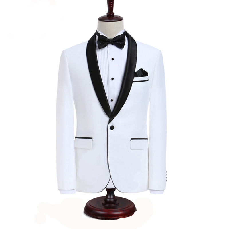 LP5506 Costume Homme Smoking Blanc Avec Revers Noir Costume De Mariage Pour Hommes Slim Fit Groom Party (Veste + Pantalon)