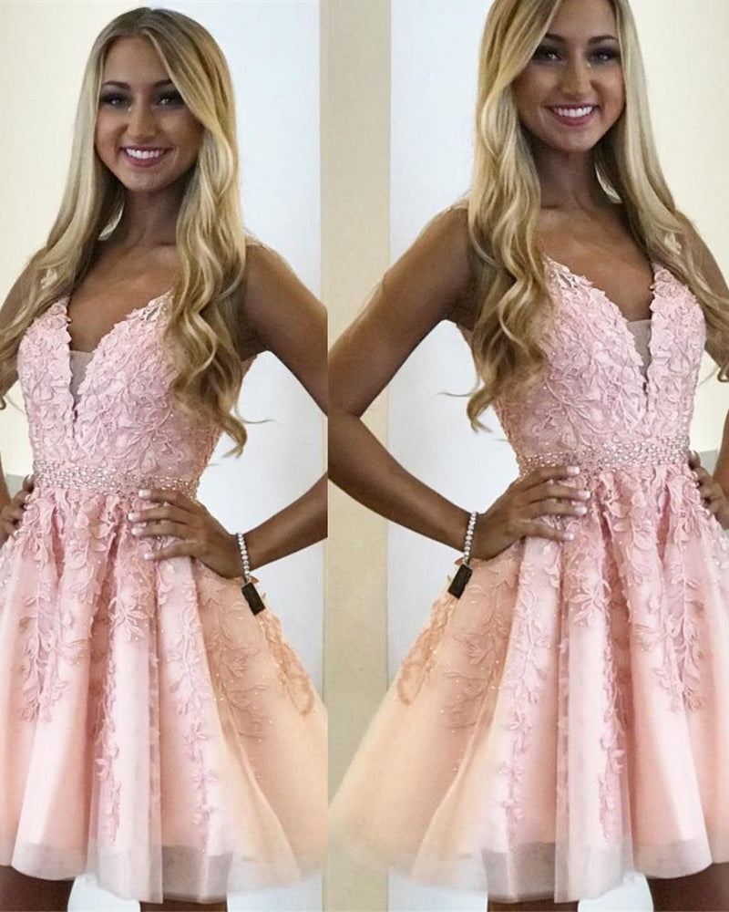Robe courte rose blush 2022 Robe de bal à col en V pour filles de 8e année