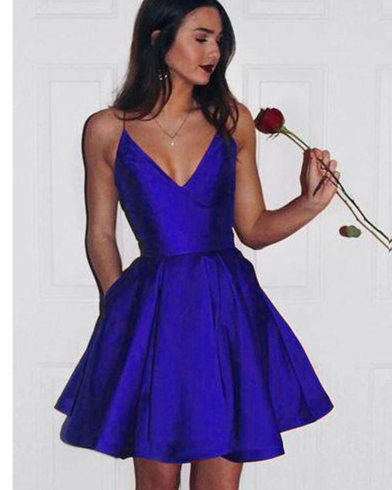 - Affichez votre sens de la mode et portez ce style glamour pour votre occasion sociale. Confectionnée dans un joli tissu satiné, cette superbe robe courte présente un décolleté en V et une jupe ample. La jupe ample en satin comporte des poches pour téléphone portable. Pour plus de styles comme celui-ci, visitez siaoryne