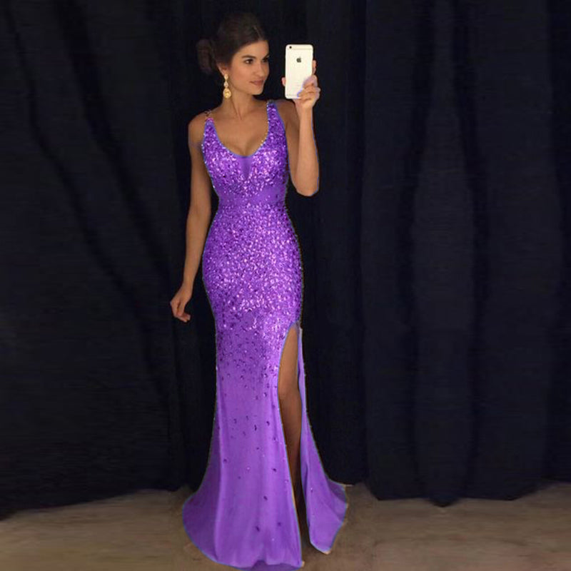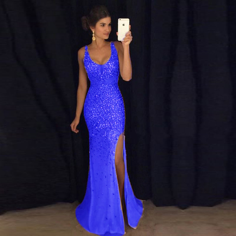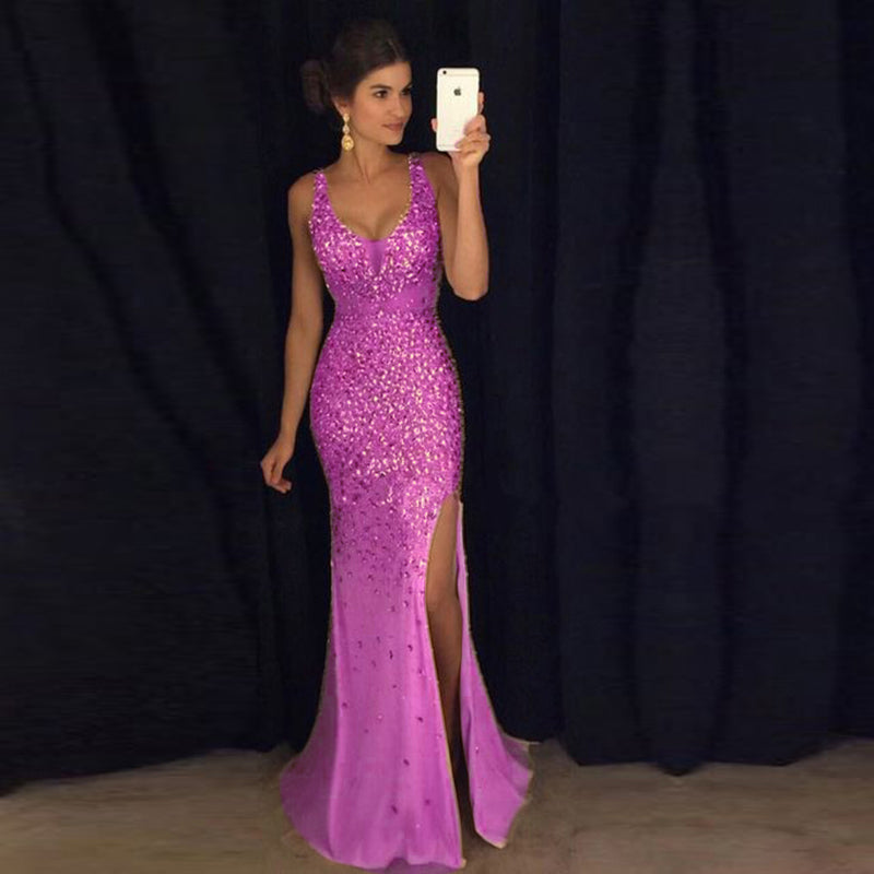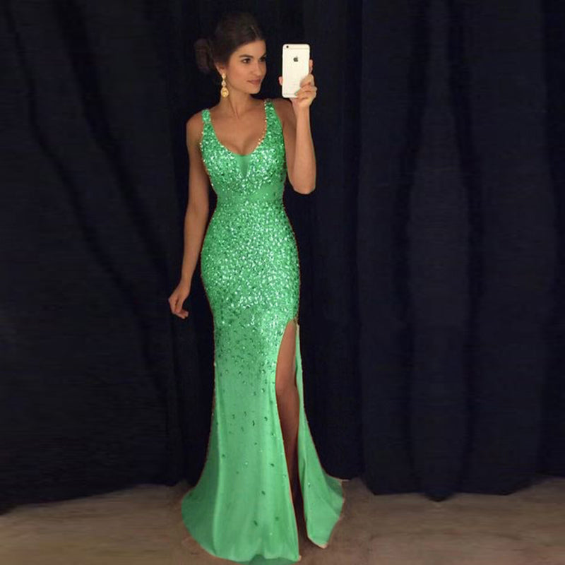 Robe de soirée de luxe en strass et cristal, style sirène sexy