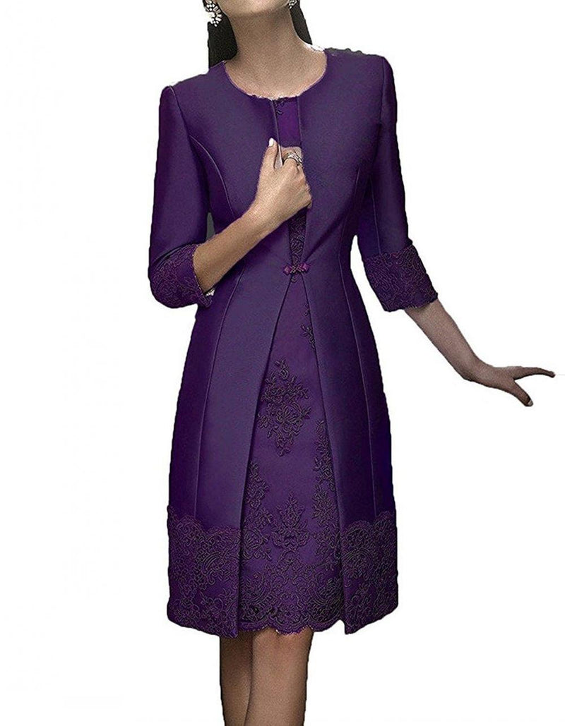 Robe de soirée élégante grise longueur genou manches 3/4 2 pièces en satin dentelle robes d'invité de mariage pour femmes, robe de mère de la mariée SP10220