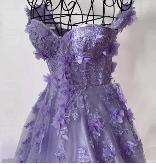 Robe de bal à fleurs lavande à épaules dénudées 2024 PL4321