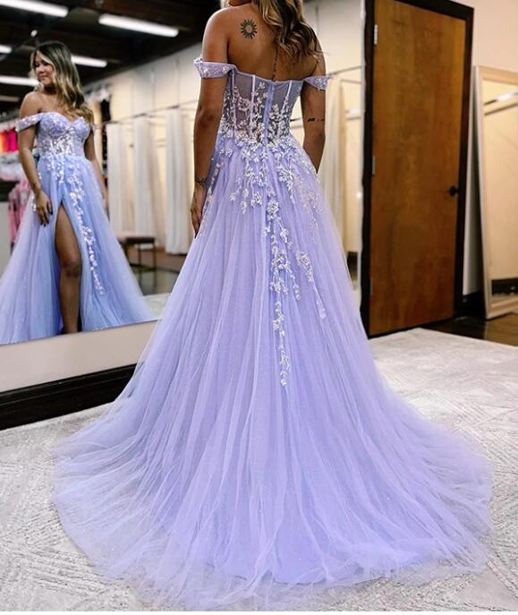 Robe de soirée d'anniversaire en dentelle lavande fendue pour Sweet 16 PL24183