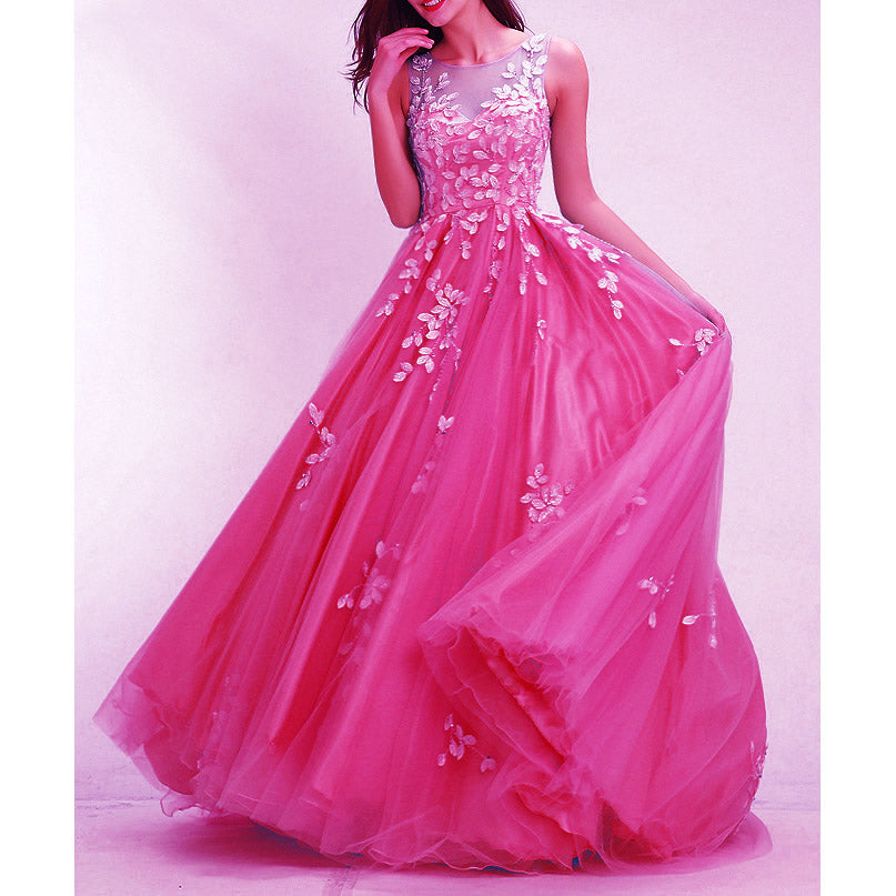 Robe de bal rose vif longue 2022 Robe de bal senior avec jupe ample en dentelle ivoire