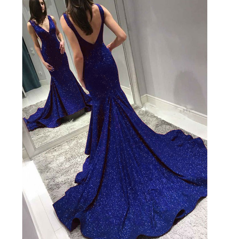 Robe de soirée élégante à paillettes, tenue de soirée sirène à col en V profond, robe de concours 2020