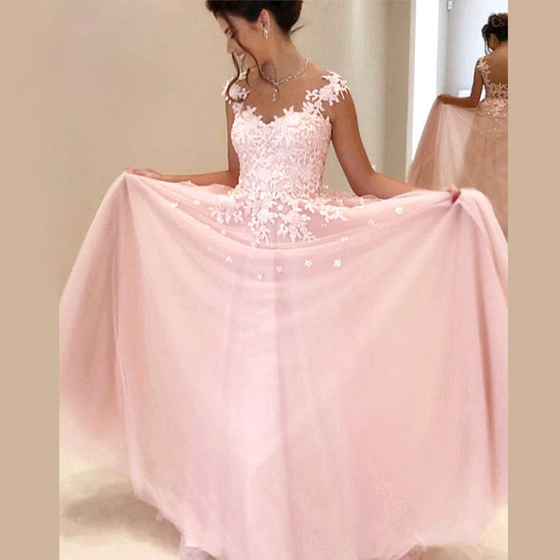 Robe de bal longue en dentelle rose fantaisie 2020 robe de soirée formelle pour femme
