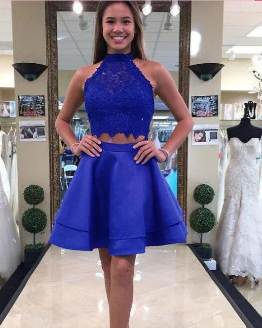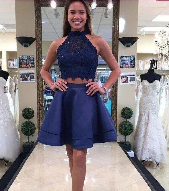 Robe de soirée courte en dentelle bleue avec haut court pour écolières, robe de cocktail, robe de remise de diplôme 2022
