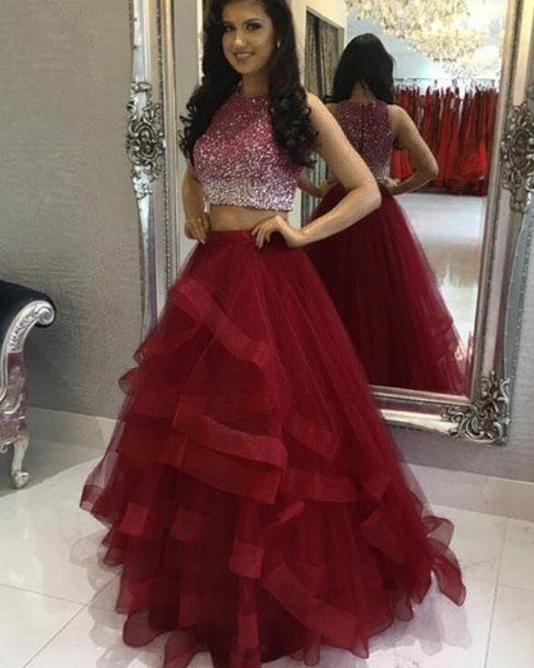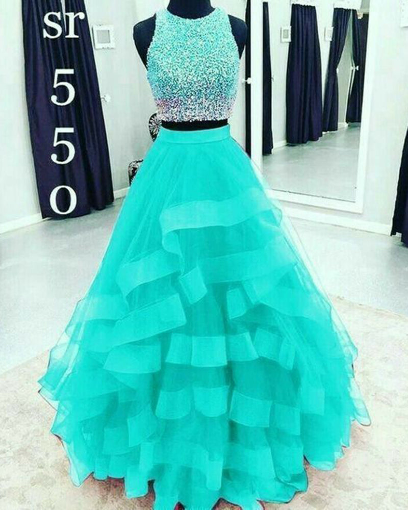 Belle robe de bal courte bleu menthe/bleu roi pour filles, 2 pièces, robe de soirée à perles ombrées PL0914