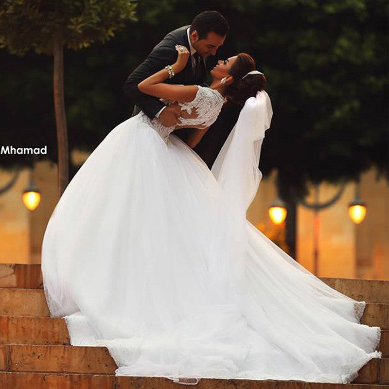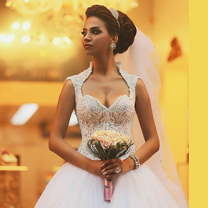 Siaoryne WD004 Robe de mariée sexy à manches courtes et perles en dentelle princesse