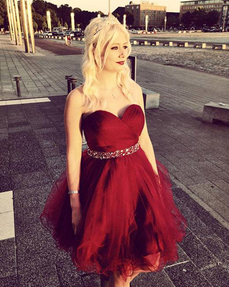 Robe de bal courte rouge chérie avec ceinture perlée Robe de remise de diplôme