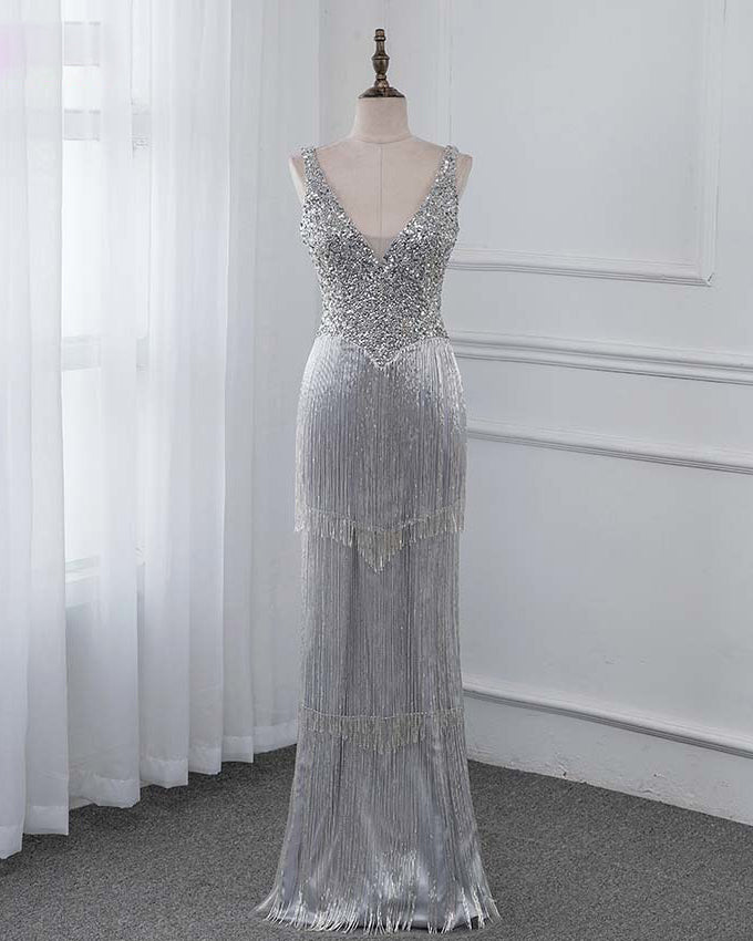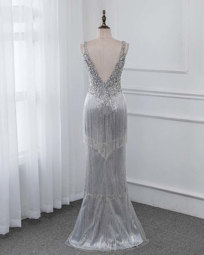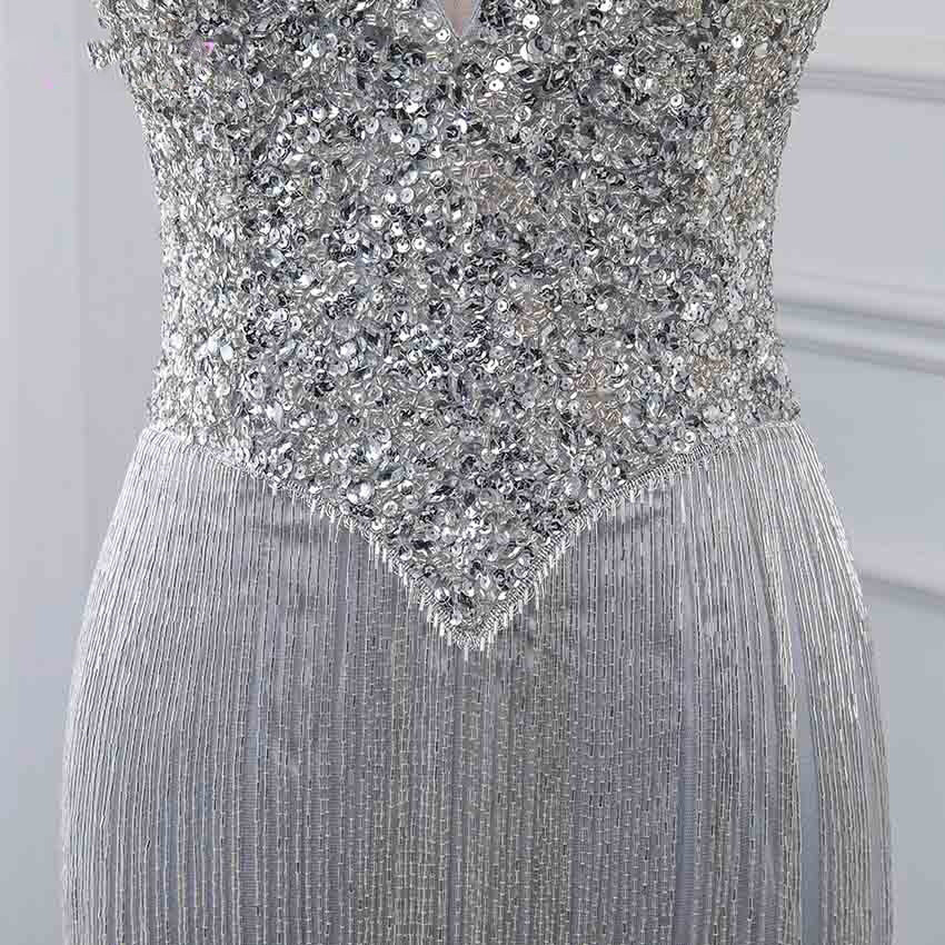 Bling Bling Silver Gray Mermaid Long Evening Party Dresses Women Luxury Pageant Gowns PL6874