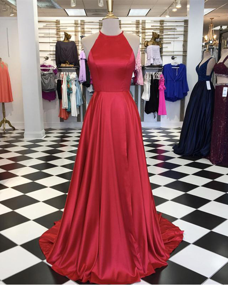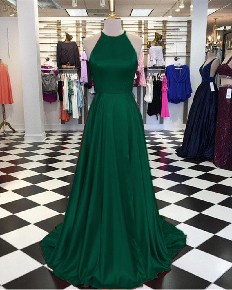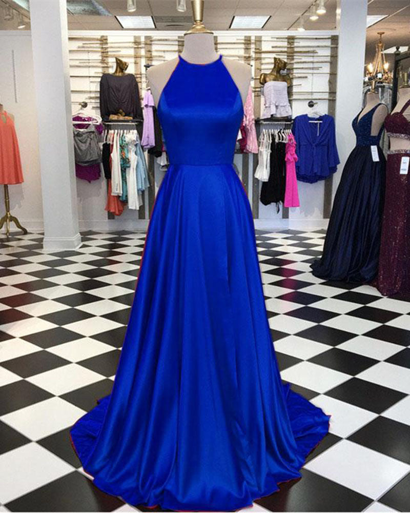 Halter Open back A Line Girls Formal Prom Dresses Long Vestido De Longo 2019