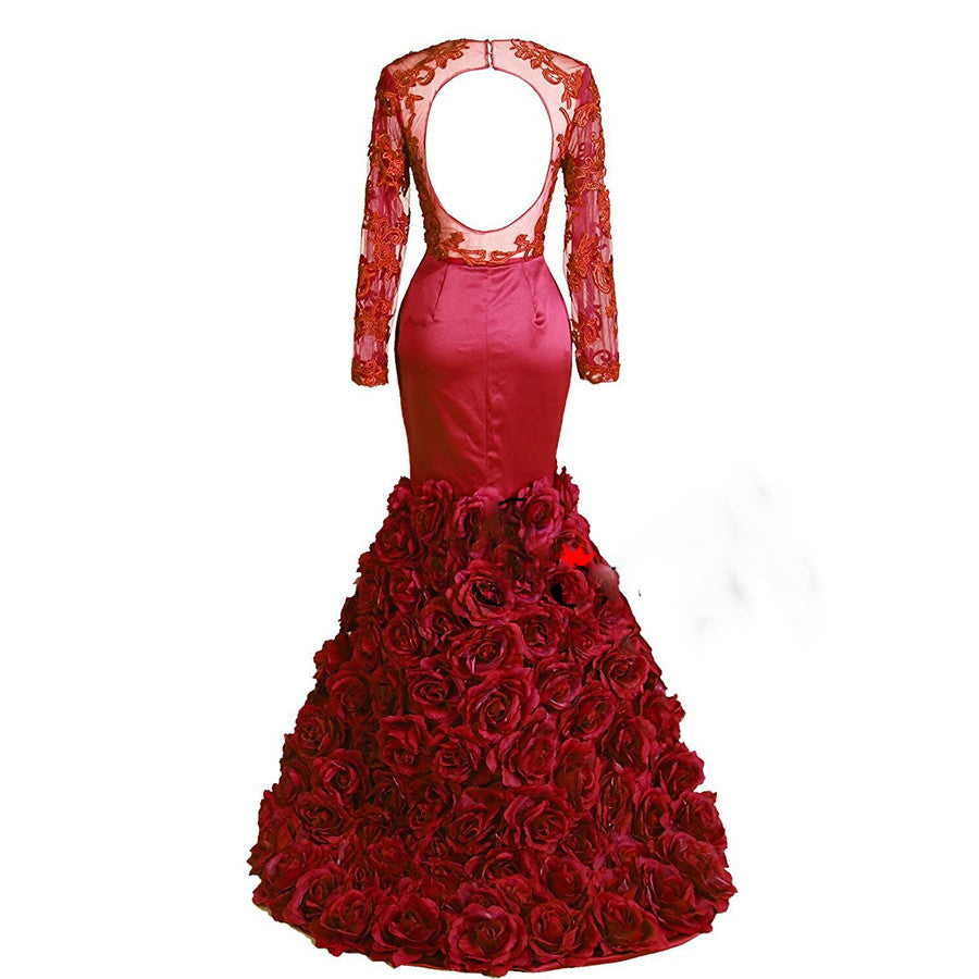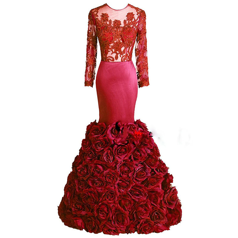 Long Sleeves Mermaid Prom Dresses African Evening Gown with flowers