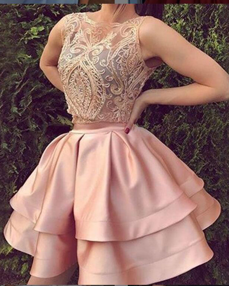 Lovely Wine Red Lace 2 Pieces Crop Top Short Lace Homecoming Dresses Party Gown 2020