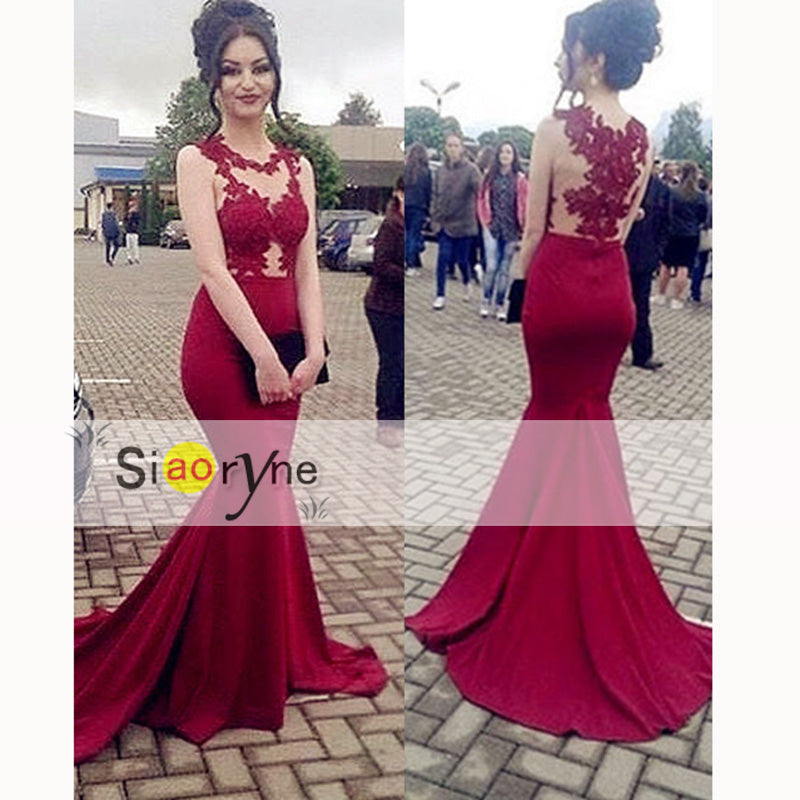 LP3353 Wine Dark Red Lace Appliqued Mermaid Prom Dresess 2018 formal Gown women Evening Long Dress