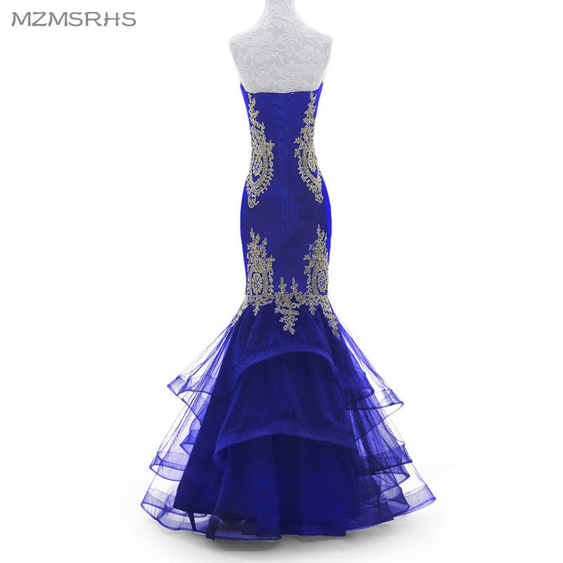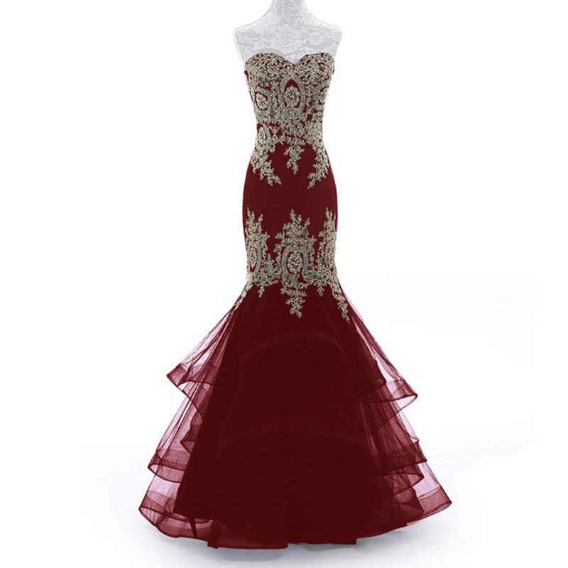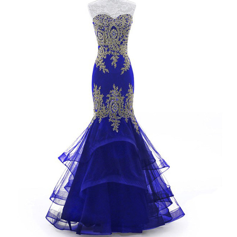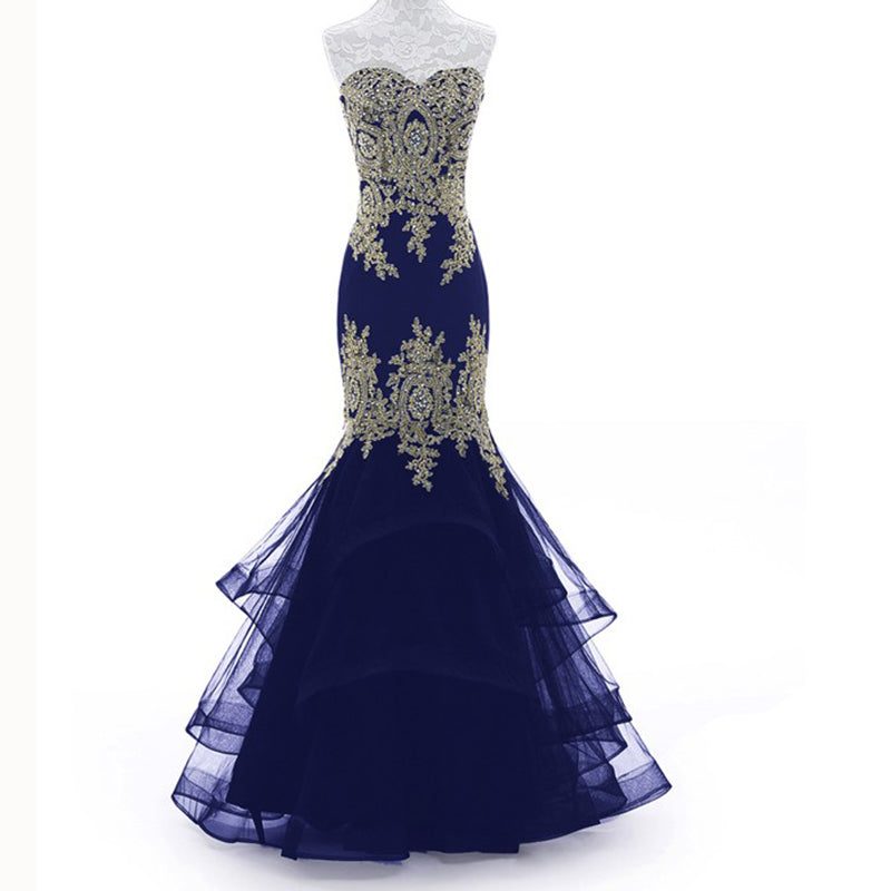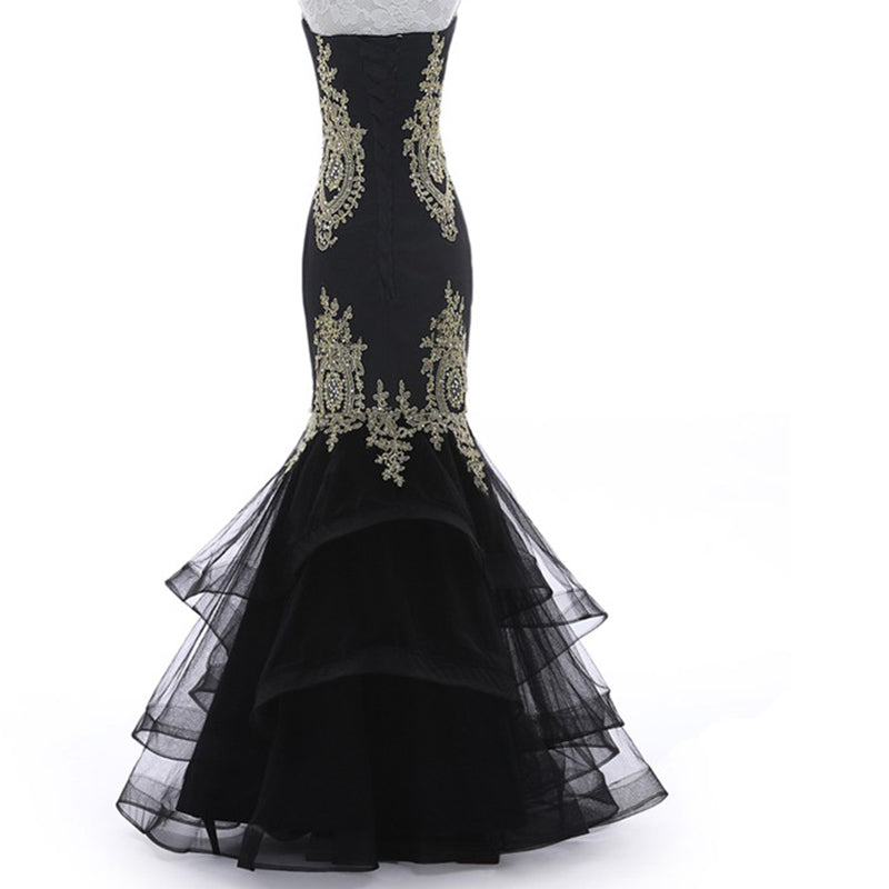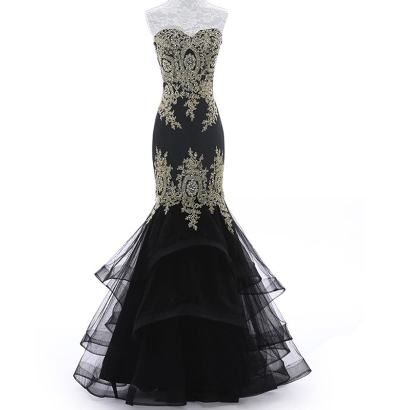 LP3359 Mermaid Black Prom Dress with Gold Lace Appliqued Evening Long Gown for Women 2018