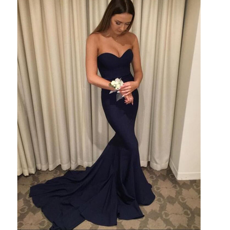 LP5699 Sweetheart Sexy Long Mermaid Satin Formal Gown Black Prom Dress Evening Party Gown 2018