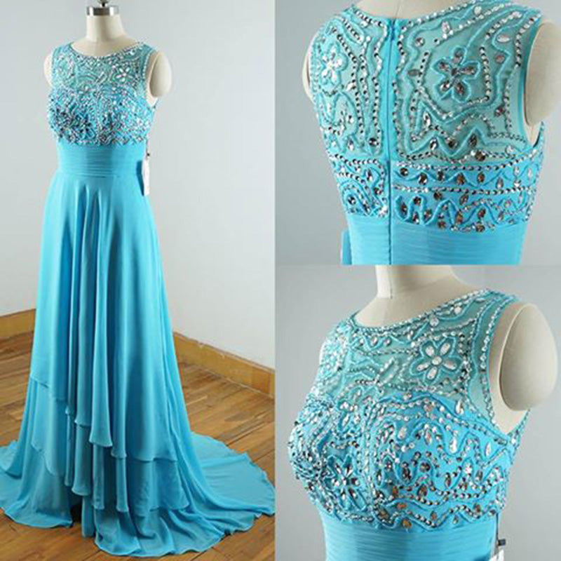 LP654 Scoop Neck Turquoise Prom Dress Long Beading Evening Gown Vestido De Festa 2018