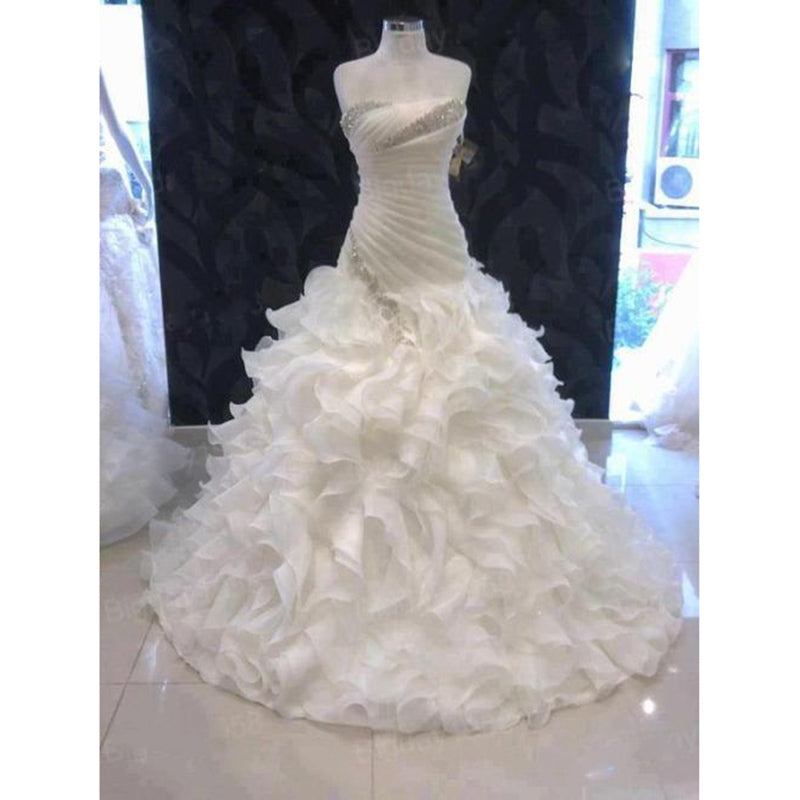 Siaoryne Strapeless Wedding Dresses Ruffle Skirt Dropped Waist Bride Dress with Beading Plus Size