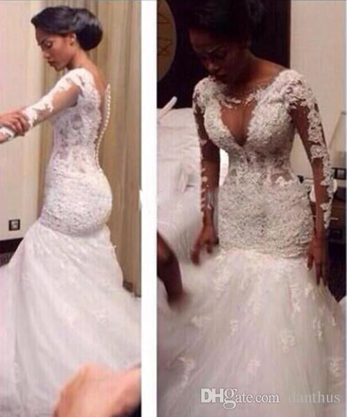 Siaoryne WD007 Sexy Mermaid Wedding Dress Lace Plus Size Long Sleeves See Through Bridal Dress